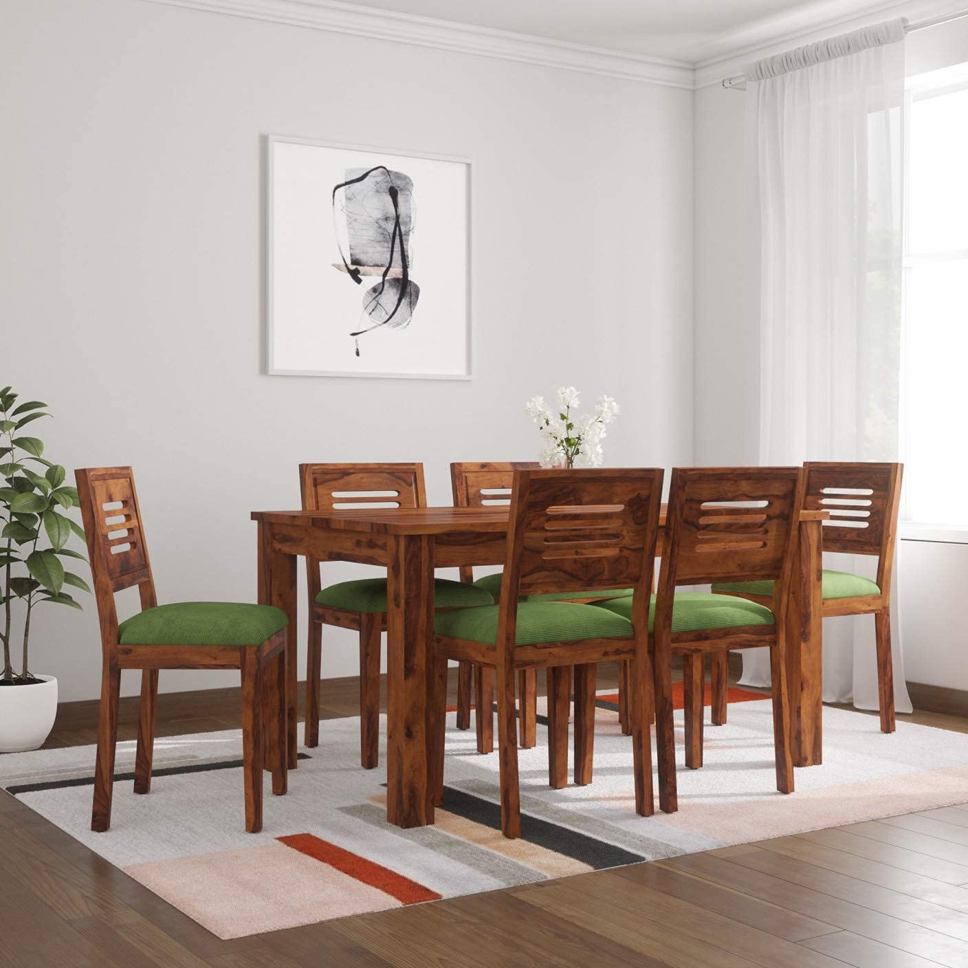 Anubhav Handicrafts Solid Sheesham Wood Rectangle 6 Seater Dining Table Set With 6 Cushioned Chair For Home Office Wooden Furniture For Living Room Hall Hotel Restaurent Natural Honey Finish Amazon In Home